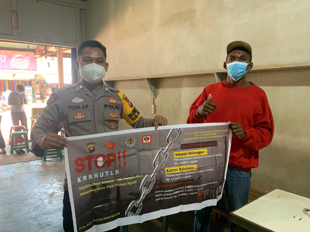 *Maklumat Kapolda Kalbar Nomor : Mak/2/VIII/2021* tentang Kepatuhan Terhadap Kebijakan Pemerintah mengenai Kewajiban, Larangan dan Sanksi Pembakaran Hutan dan Lahan, sosialisasi *Peraturan Gubernur Nomor : 103 Tahun 2020* tentang Tata cara Pembukaan Lahan Berbasis Kearifan Lokal, dan sampaikan *Himbauan Bupati Ketapang Nomor : 360/0065/BPBD-A/2021* tentang Antisipasi Musim Kemarau dan Pencegahan serta Pengendalian Kebakaran Hutan dan Lahan kepada masyarakat dan Sambang ke rumah warga masyarakat dan sekaligus mengingatkan agar selalu mematuhi protokol kesehatan dengan cara 5M dalam rangka pencegahan penyebaran covid 19.