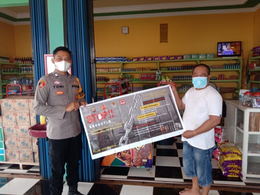 BHABINKAMTIBMAS POLSEK KENDAWANGAN RUTIN SOSIALISASI KARHUTA DAN HIMBAUAN PENGGUNAAN MASKER