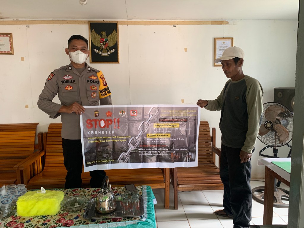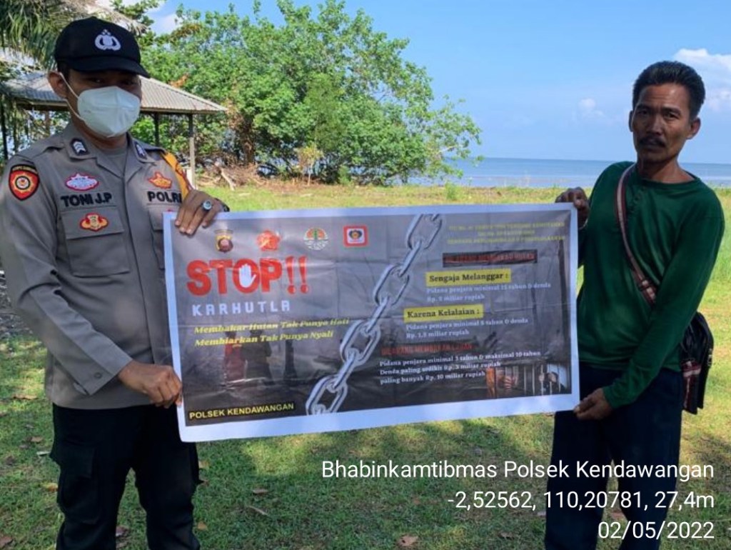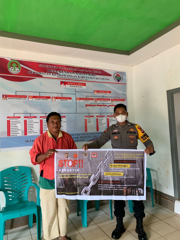 *Maklumat Kapolda Kalbar Nomor : Mak/2/VIII/2021* tentang Kepatuhan Terhadap Kebijakan Pemerintah mengenai Kewajiban, Larangan dan Sanksi Pembakaran Hutan dan Lahan, sosialisasi *Peraturan Gubernur Nomor : 103 Tahun 2020* tentang Tata cara Pembukaan Lahan Berbasis Kearifan Lokal, dan sampaikan *Himbauan Bupati Ketapang Nomor : 360/0065/BPBD-A/2021* tentang Antisipasi Musim Kemarau dan Pencegahan serta Pengendalian Kebakaran Hutan dan Lahan kepada masyarakat dan Sambang ke rumah warga masyarakat dan sekaligus mengingatkan agar selalu mematuhi protokol kesehatan dengan cara 5M dalam rangka pencegahan penyebaran covid 19.