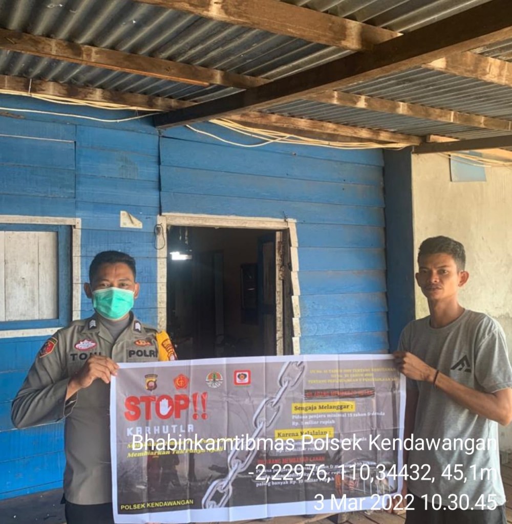 *Maklumat Kapolda Kalbar Nomor : Mak/2/VIII/2021* tentang Kepatuhan Terhadap Kebijakan Pemerintah mengenai Kewajiban, Larangan dan Sanksi Pembakaran Hutan dan Lahan, sosialisasi *Peraturan Gubernur Nomor : 103 Tahun 2020* tentang Tata cara Pembukaan Lahan Berbasis Kearifan Lokal, dan sampaikan *Himbauan Bupati Ketapang Nomor : 360/0065/BPBD-A/2021* tentang Antisipasi Musim Kemarau dan Pencegahan serta Pengendalian Kebakaran Hutan dan Lahan kepada masyarakat dan Sambang ke rumah warga masyarakat dan sekaligus mengingatkan agar selalu mematuhi protokol kesehatan dengan cara 5M dalam rangka pencegahan penyebaran covid 19.